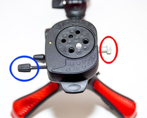 赤で囲まれたネジは、スタビライザーとして使用する時にカメラを載せた時左右のバランスを合わせるため、このネジを回すと雲台が左右に動くようになっています。