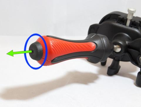 テーブル三脚として使うには、グリップの底にあるキャップを引っ張り外します。