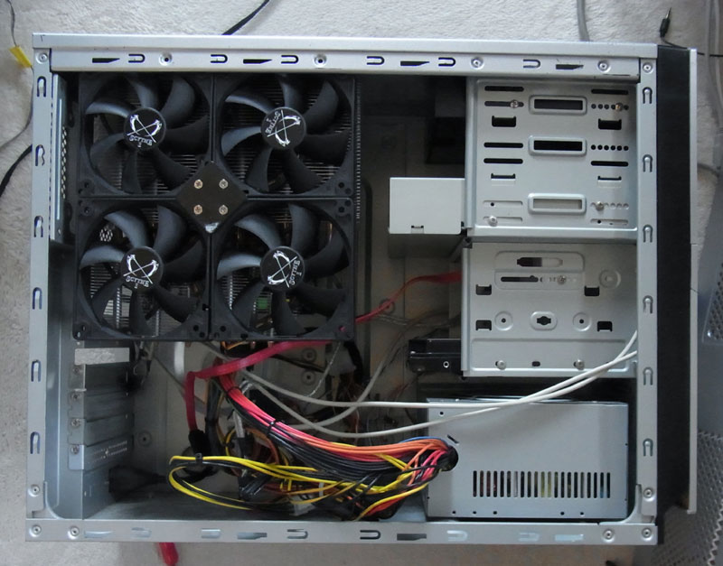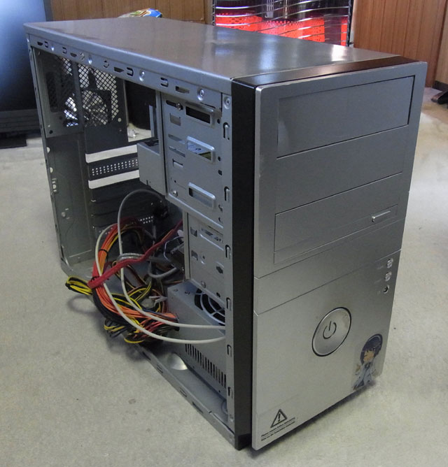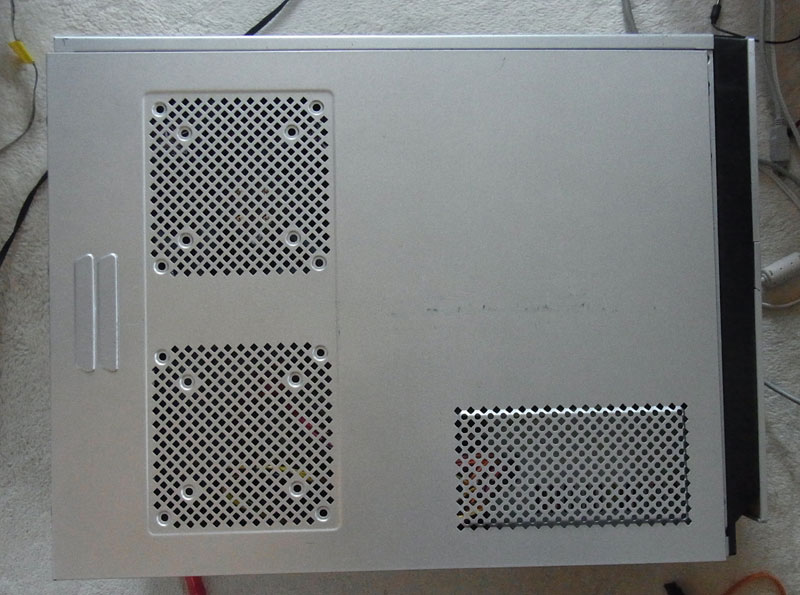 A-2766というメーカー不明ケースなのですが、電源をフロント下部に横置きするという特殊配置のATXケースで、ATXとしてはコンパクトな作りなのですが、電源配置のおかげで横幅が広くとってあるんです。
