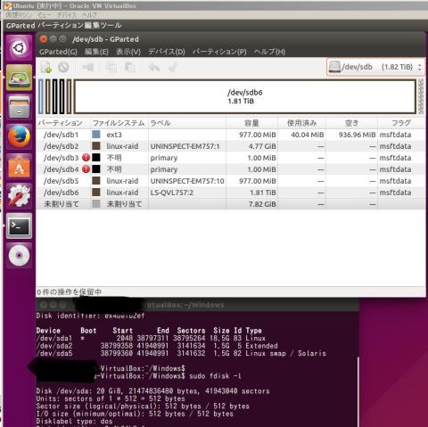 VirtualBoxにUbuntuをインストール。さらにXFS形式はUNIX系の古いやつなのでXFS管理ツール、RAIDをいじるからmdadm、パーティーション系のGpartedをインストール