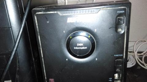 ググってみるとBuffaloのサイト内のどこだかわからないところに記述されているのを見るとHDDの認識エラーらしい。修理に出せとか言っているが、ハード要因なら修理だが、RAID周りなら修復すればいけるはず。