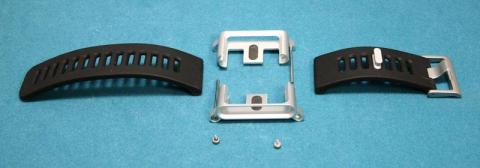 余ったベルトの止め方も面白く、シリコン製のバンドの穴にStrap Keeperなるリベットの様な役目をさせるモノをベルトの内側から差し込み、余った部分のベルトの穴を重ねて止めます。