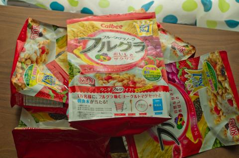 フルグラは、こんがり焼いた穀物とドライフルーツをミックスしたシリアルで、普通のシリアルよりは飽きがこない気がします。