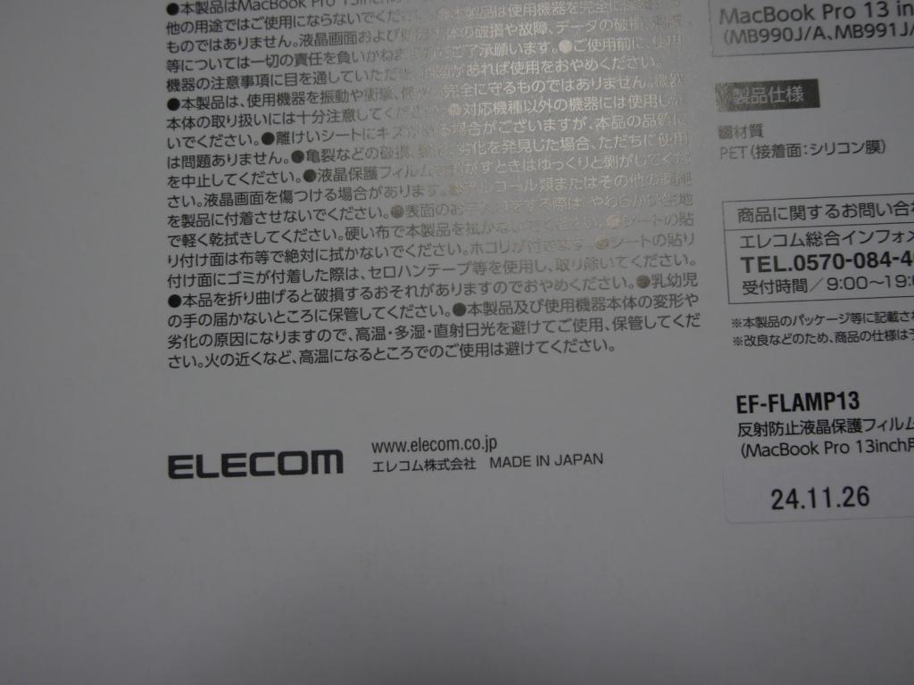 Retinaディスプレイではないので、ノングレアフィルム(非光沢系) でもいいかなと思って購入しました。