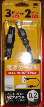 HPノートのアダプタの電源コードは、ミッキータイプ(3ピン)です。標準で付いているのは、長くかつ太くで取り回しにくいです。で、今回この...
