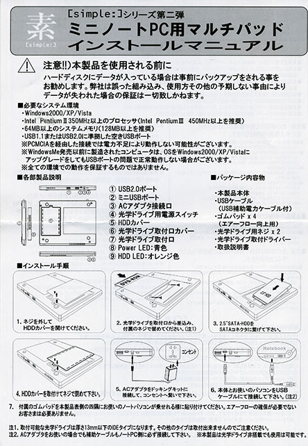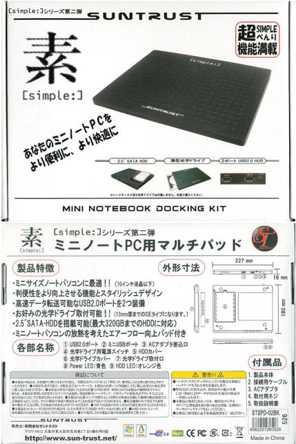 このマルチパッドは、S-ATA HDDが1基,IDE 光学ドライブが1基,USB 2.0HUB(UP 1ポート,DOWN 2ポート)も搭載されています。