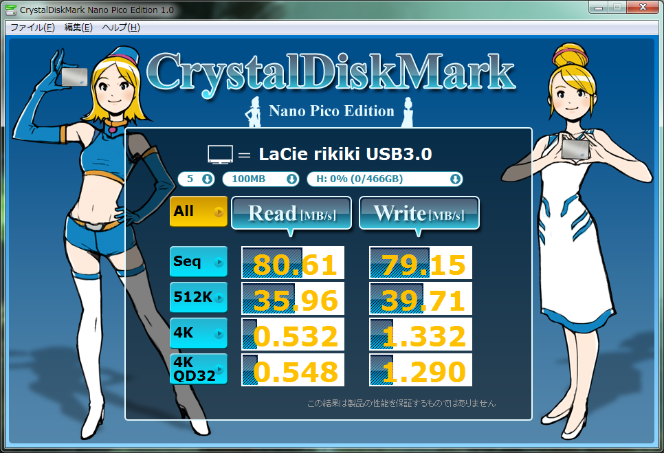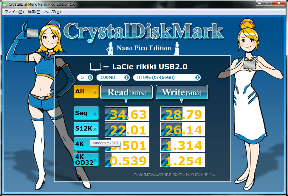 続いては、zigsow定番のCrystalDiskMark Nano Pico Edition で計測してみます。