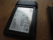 まずは、先ほど①のⅡで書きましたケースにIntel SSD 320を挿入し、パソコンにeSATAケーブルで接続します。
