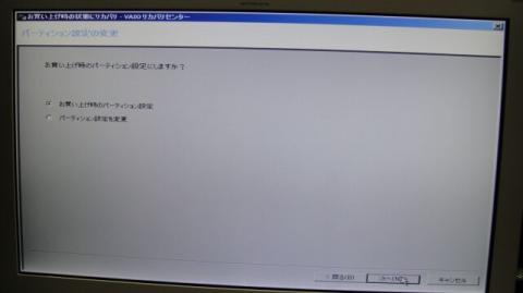 【お買い上げ時のパーティション設定】を選んで【次へ】をクリックします。