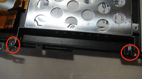 手前のHDDホルダーを固定しているねじ2本を外します。