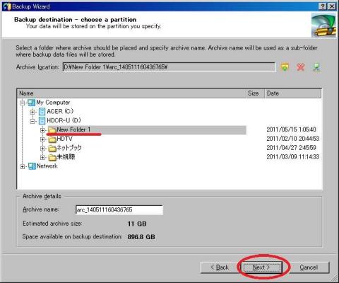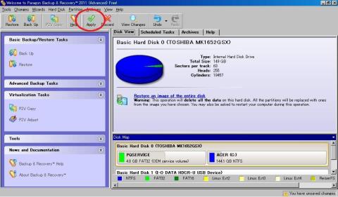 インストールした paragon-software Backup & Recovery 2011 (Advanced) Free でUSB接続の外付けHDDにバックアップします。