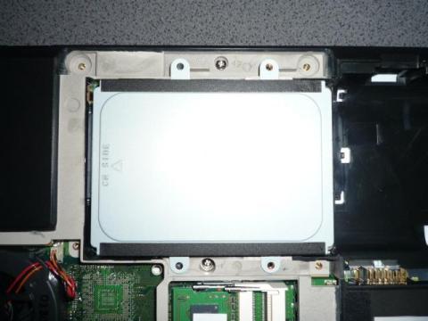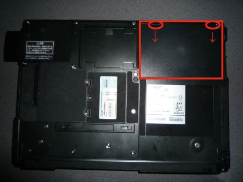 HDDは中央上部、バッテリースペースの左隣に搭載されています。