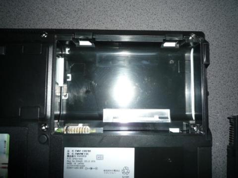 写真上部が背面側となっています。ここの右上角がバッテリースペースとなっていてまずバッテリーから外します。