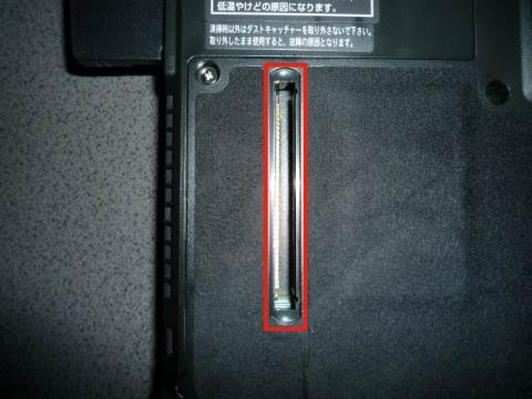 左側中段にCPU冷却フィンへの埃の付着を軽減するダストカバーを取り外します。