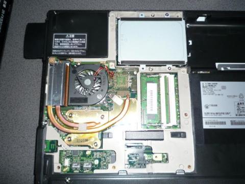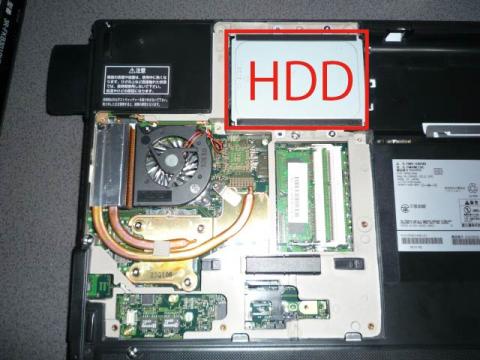 カバーを外すとHDDをはじめ、CPU、メモリー、冷却用フィンが出てきます。