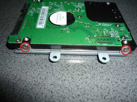 HDDの長手側両側面にトレイとの接続ねじが2本ずつあります。