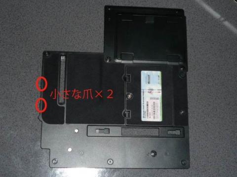 背面カバーの左側中央付近に小さな爪があるので(写真の赤丸印)