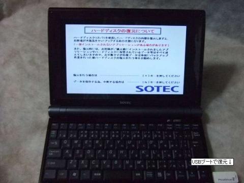 手順は「魔理沙ん家の電波塔」の「SOTEC C101W4のリカバリディスクを作成する方法」