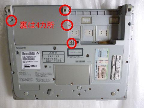 次にネジはPCを開けてキーボード側の上方中央の1カ所裏は4カ所のネジを取り去ります。
