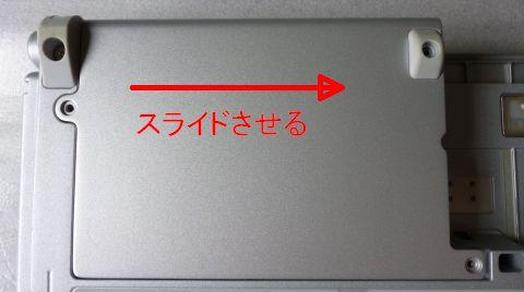 W7のHDDの交換はノートPC、それも小型軽量を追求したモバイルPCとしては例外的に非常に簡単です。外すネジは5つ。いずれも小型(No.0)のプラスネジ