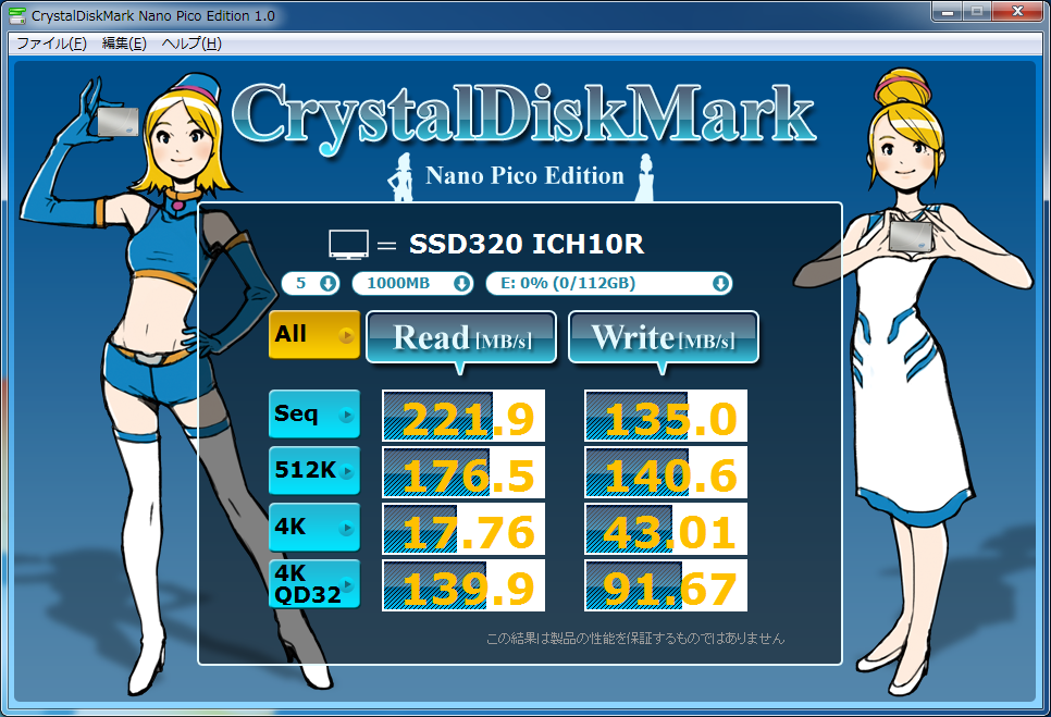 しかし、ランダムアクセスについては4Kランダムリードが38,000IOPS、4Kランダムライトが14,000IOPSと当時としては優秀な数値を叩き出しており、今では最新のSSDには負けるとはいえ、必要十分な性能を保っています。