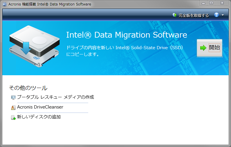 intel Data Migration Softwareを起動し、開始をクリックします。