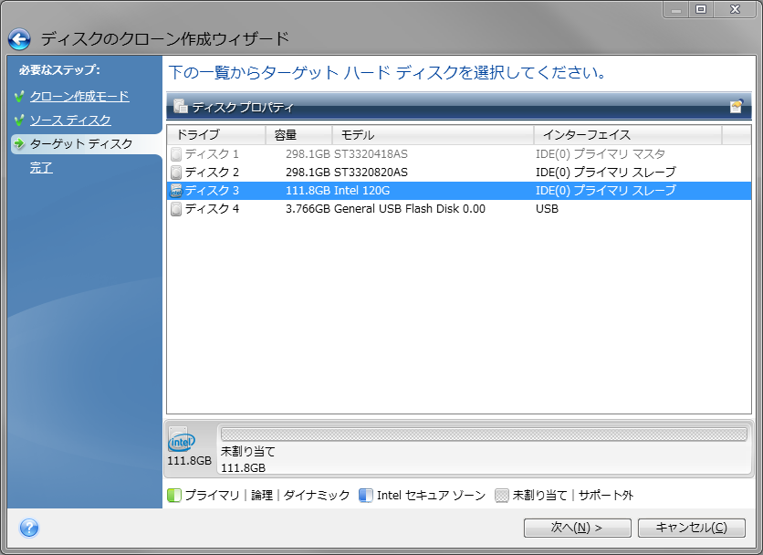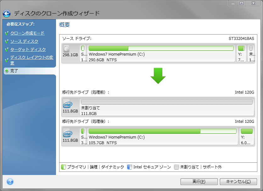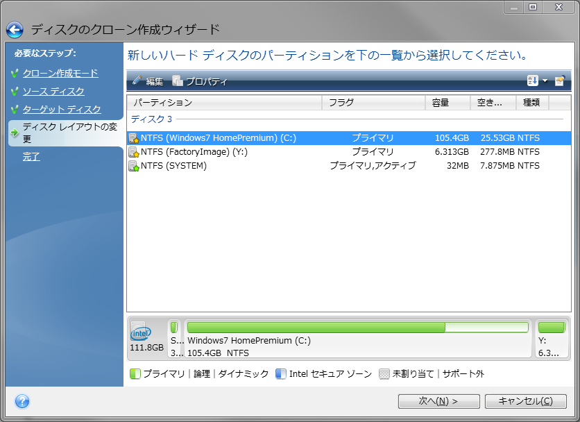 2,intel Data Migration SoftwareでHDDのパーティションコピー&サイズ調整
