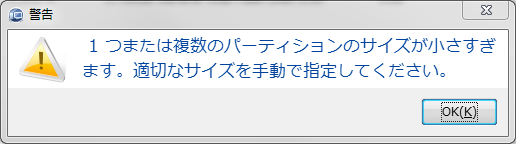 OS以外にリカバリ用のパーティションもあった関係か、警告が出ましたので調整を行います。