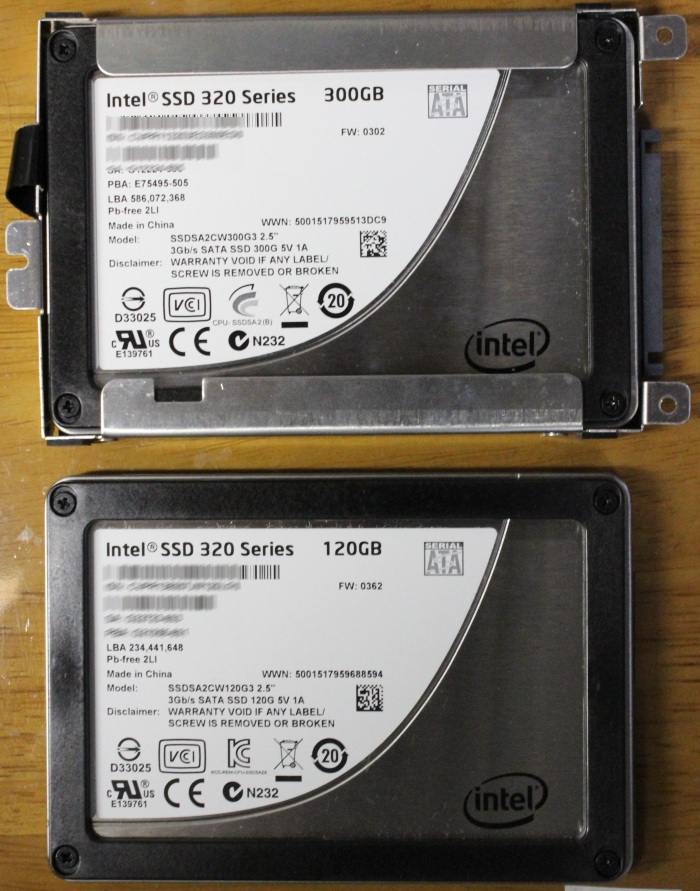 取り出した300GBと120GB。当然ながら形状は変化していない。