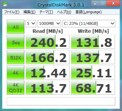 安定して100MB/sを超えるランダムアクセスは素晴らしい。