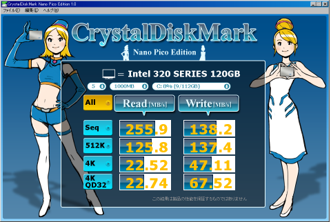 SSDは旧PC(07年作)、旧OS(xp)でも十分に早い事が分かりました。