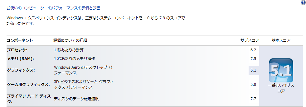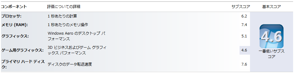 今回は、ディスクとしての速度より消費電力の低さを求めてますので、消費電力量(Wh)がメインで、Windows7 エクスペリエンス インデックスとSSDのベンチマークとして CrystalDiskMark Nano Pico Editionでの速度測定を行います。