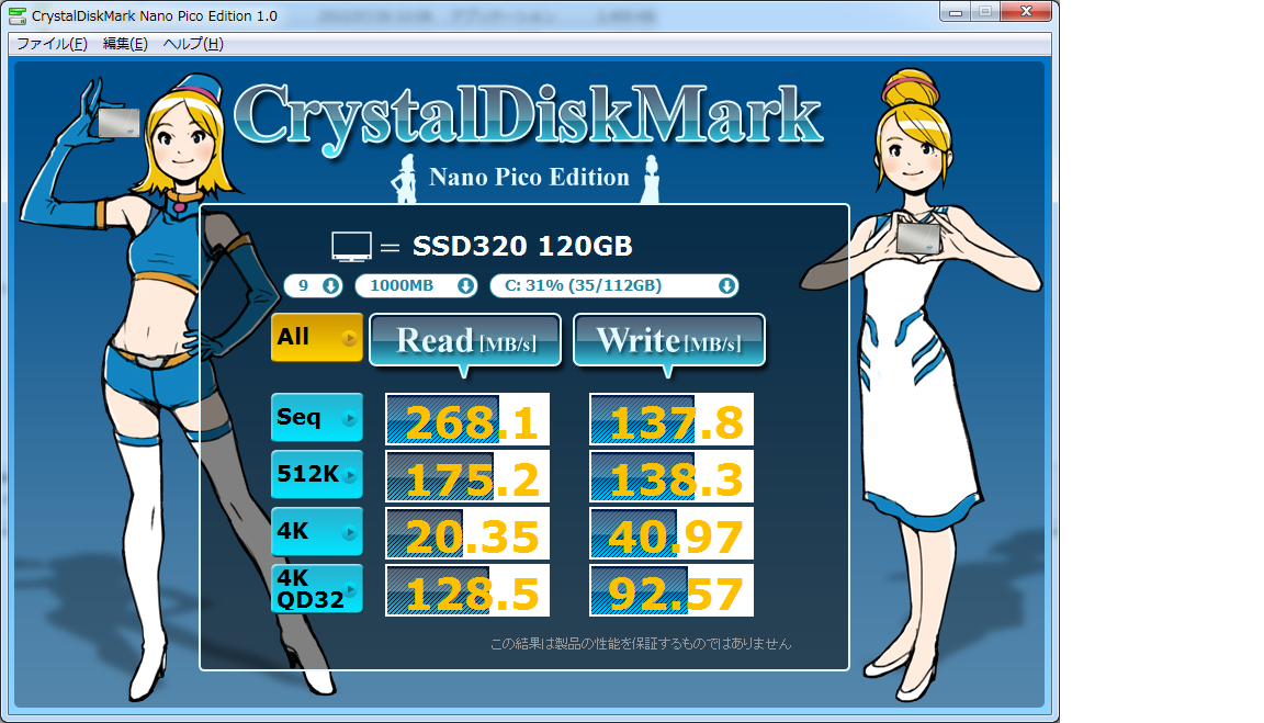 ●ラウンド4 CrystalDiskMark Nano Pico Edition → SSD 320の勝ち
