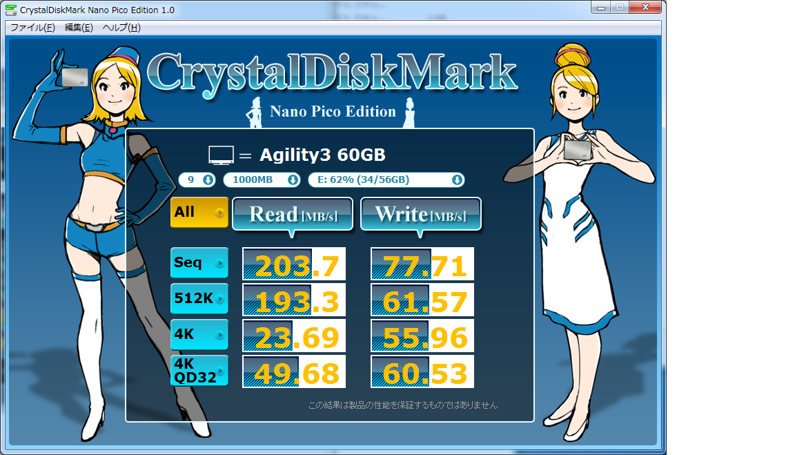 Agility3 60GB (ドライババージョン違いによるグラフィック差があります)