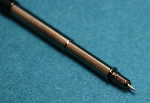 また、ペン先の反対側はスクリュー式のキャップになっており、ボールペンが仕込まれています。