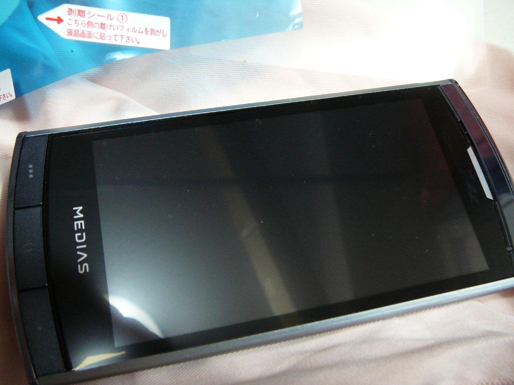 次にフィルムを貼ります。空気が入らないように慎重に。本体上から合わせると良いかと思います。