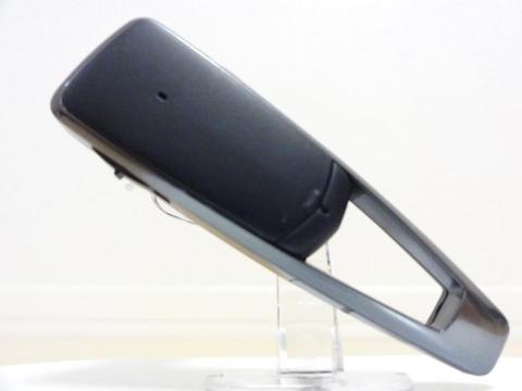 本体側面。電源スイッチがスライド(オレンジ色が見える位置はOFF)というのは嬉しい。外したときに電源ON/OFFの視認確認が容易。