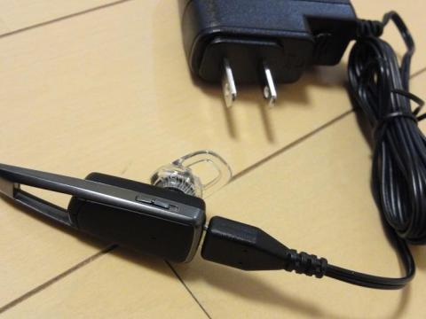 こんな感じで付属の充電器と繋ぐのですが、スマートフォンの充電器でも可能でした。ちなみに私の充電器は早々にパッケージと共に押入れの奥に。