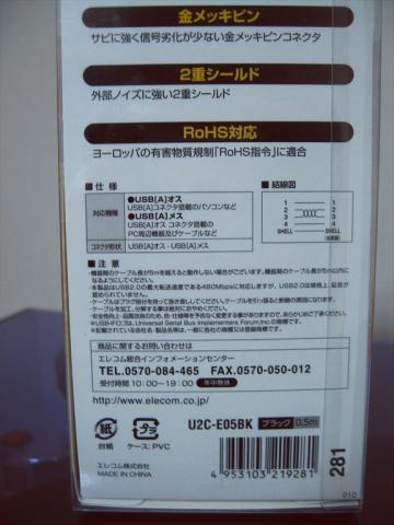 ELECOM USB2.0延長ケーブル ノーマル 0.5m U2C-E05BK
