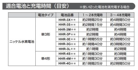 仕様:単3形・単4形ニッケル水素電池を4本同時に充電可能