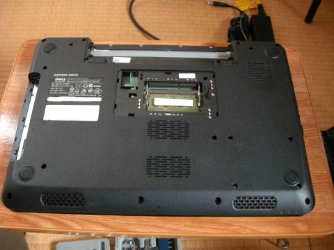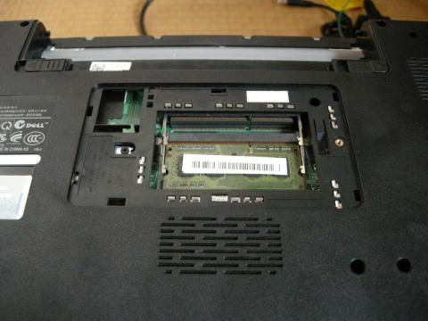 メモリのふたを外します。メモリの左側にあるネジを取り外します