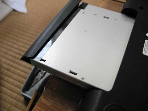 メモリの左側のねじを外すとDVDドライブを引き出して取り出すことができます。
