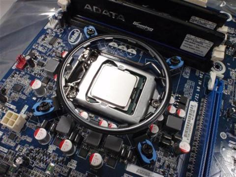 水枕をCPUに取り付け、ツメが合致するように回転し…