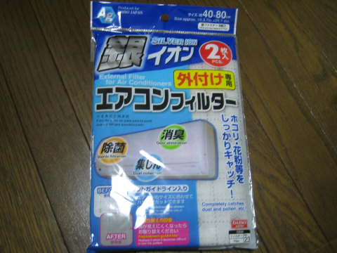 今回の主役。ダイソーで購入したエアコンフィルター。これを