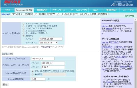 -DNS(ネーム)サーバーアドレス : 192.168.24.1