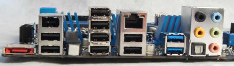 バックパネルは左からeSATA、FireWire/USB2.0x2、USB2.0x4、GbE/USB2.0x2、USB3.0x2、7.1chサウンド入出力/光出力(TOXLINK)となる。