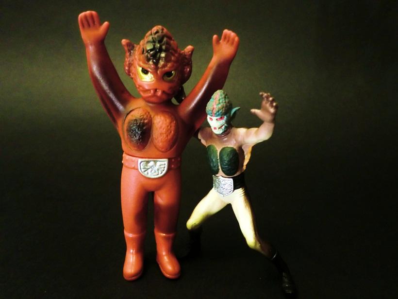 1人¥315。左からさそり男、蝙蝠男、死神カメレオン、ゲバコンドル。