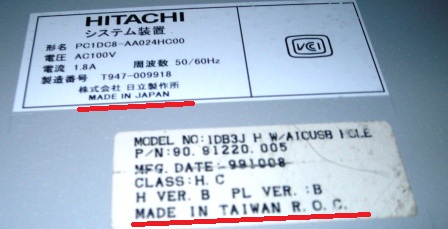 >日立のシールが日本製なんだよ!