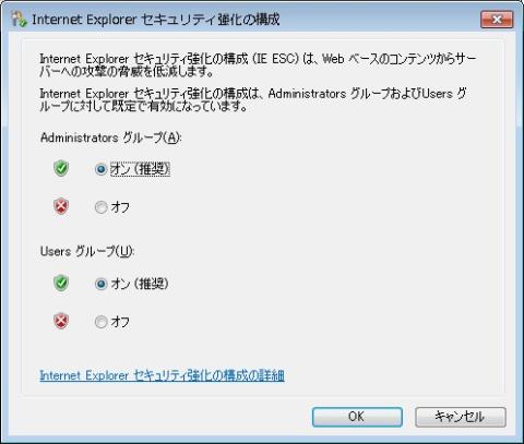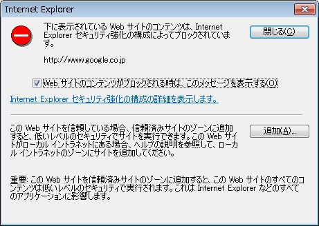 ・この様に「 Internet Explorer セキュリティ強化の構成 が有効になっています。 」の警告が出ます。