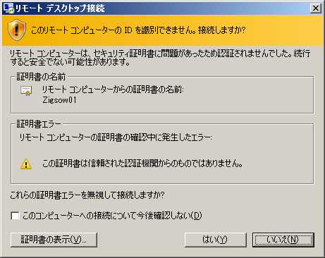 ・起動状態でさらにアクセスをしようとするとご覧のダイアログがでてきます。